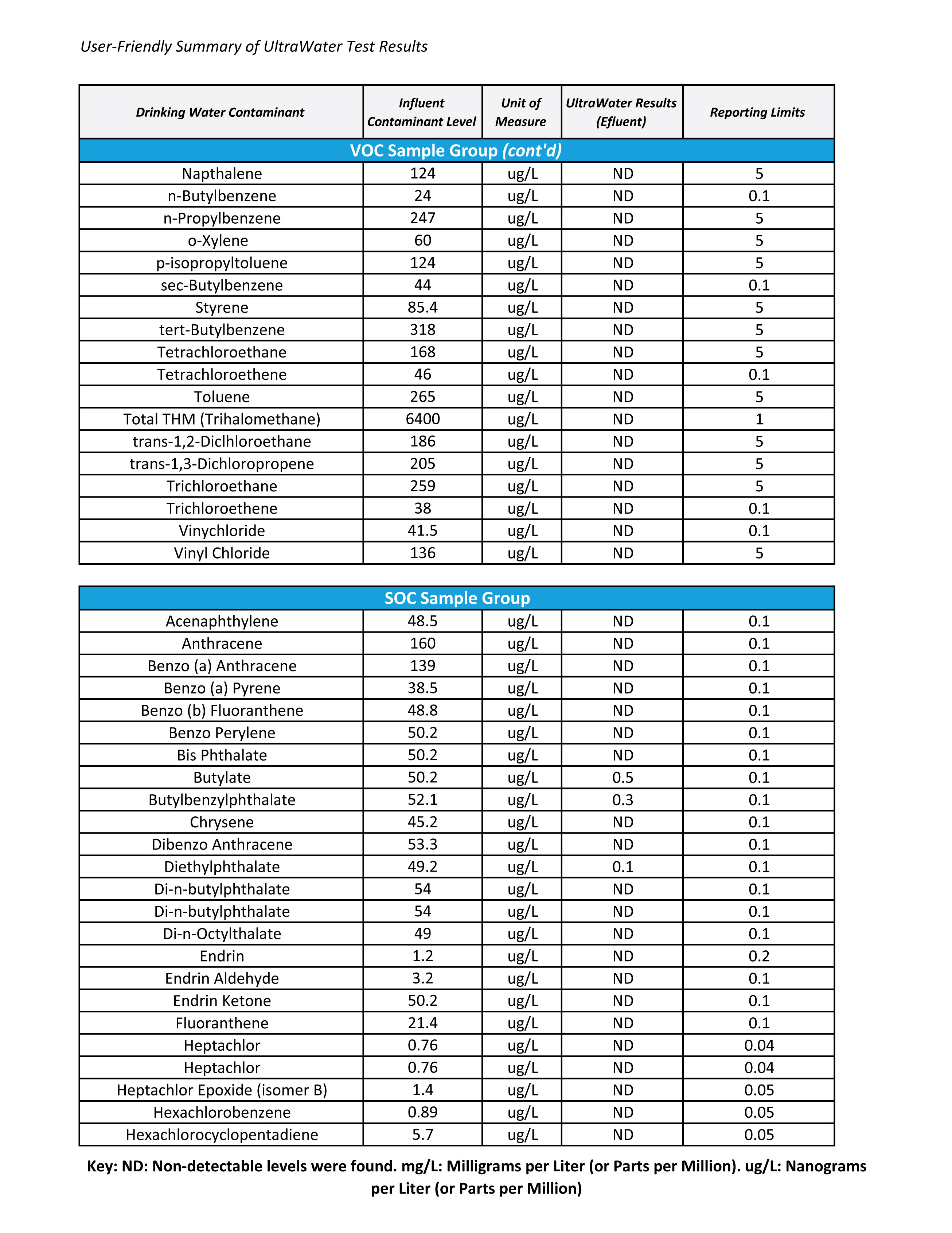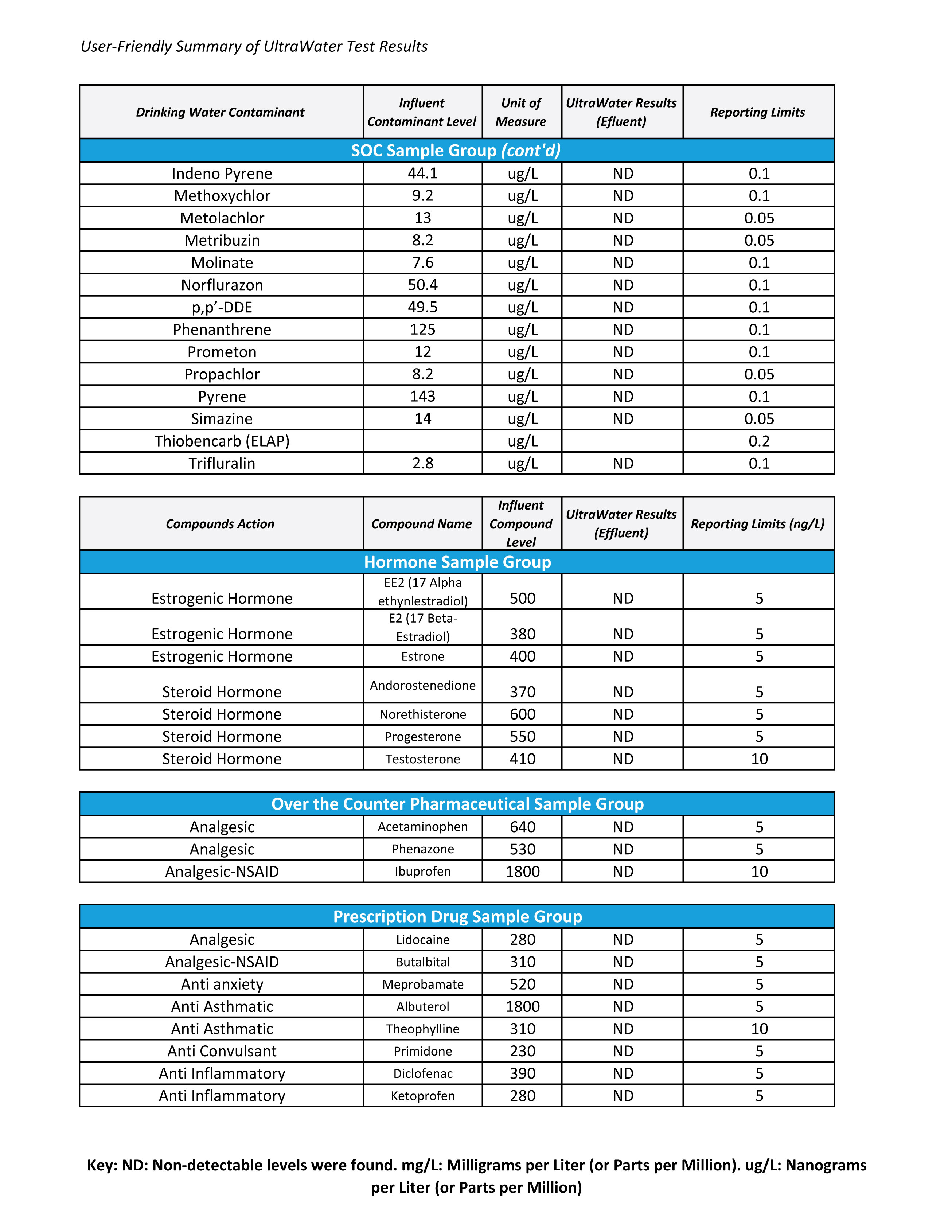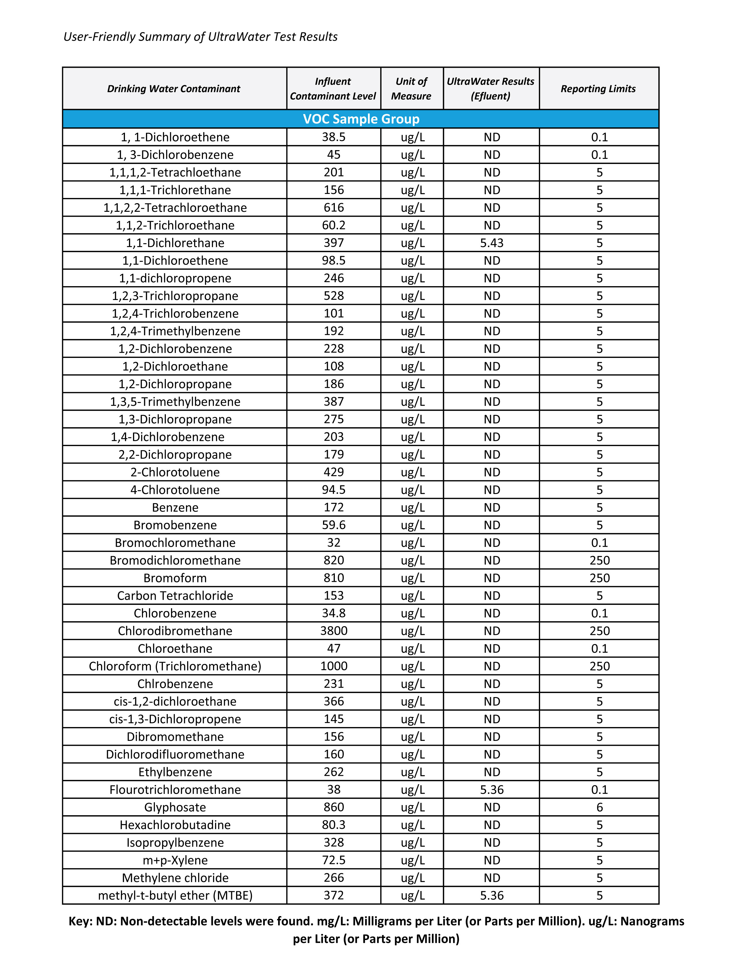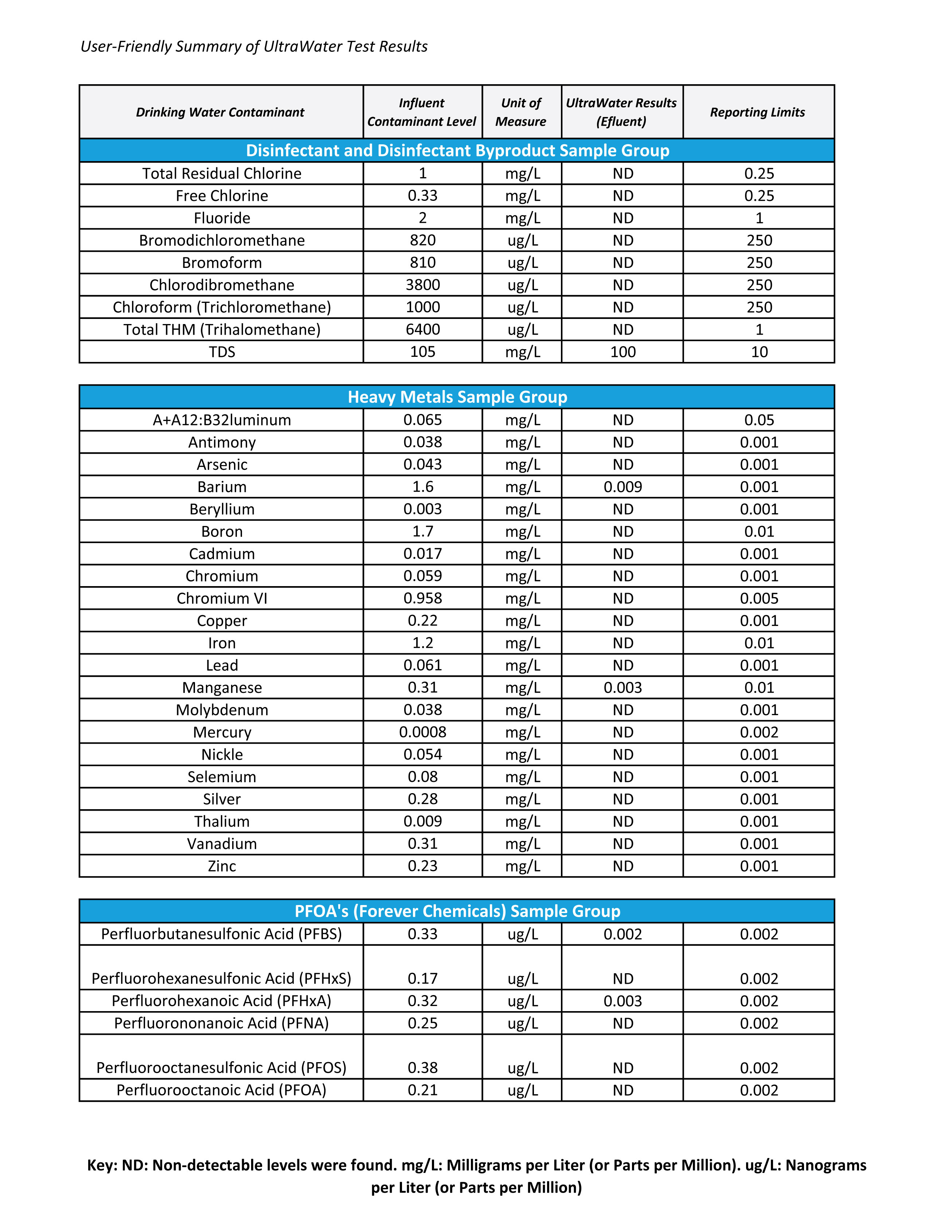UltraWater Filter Test Results
