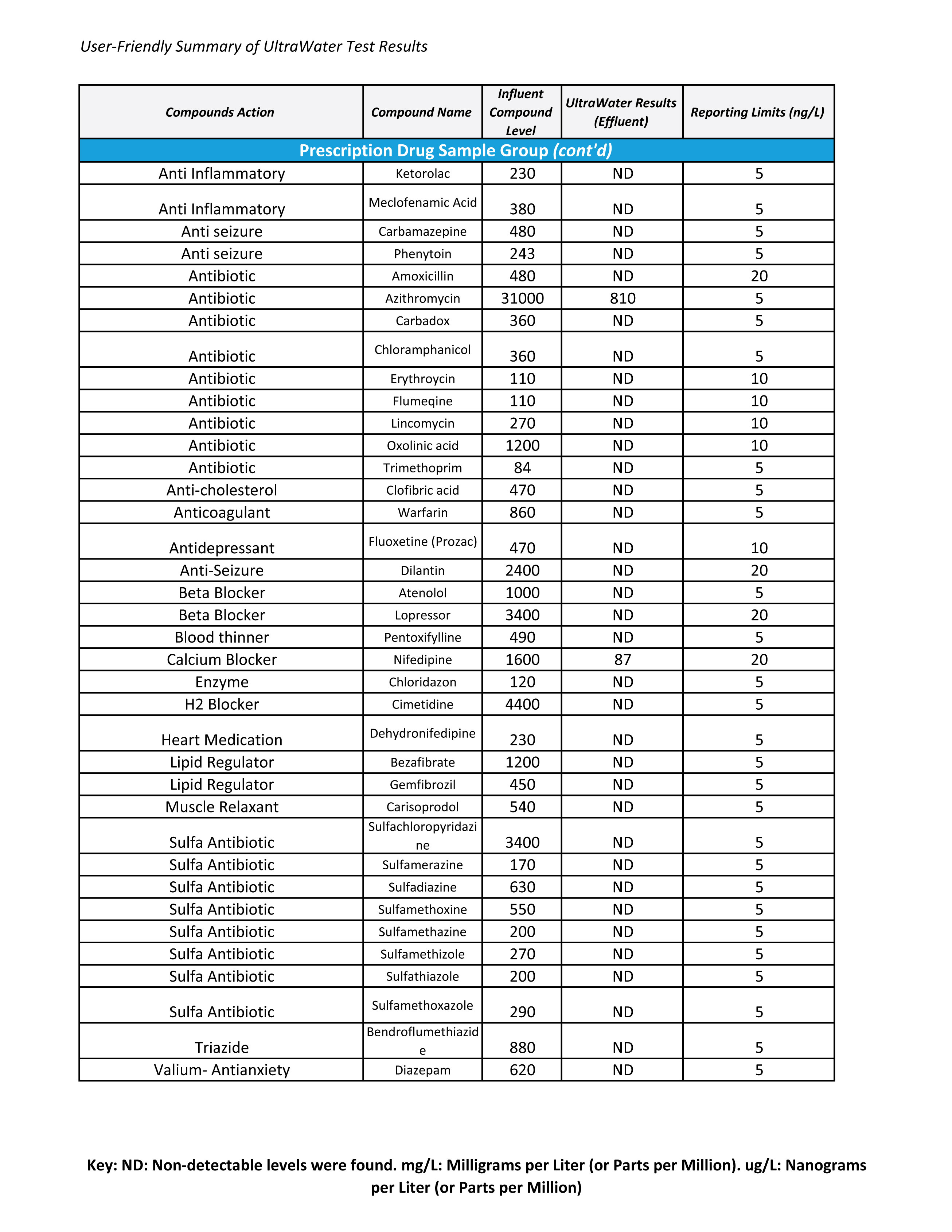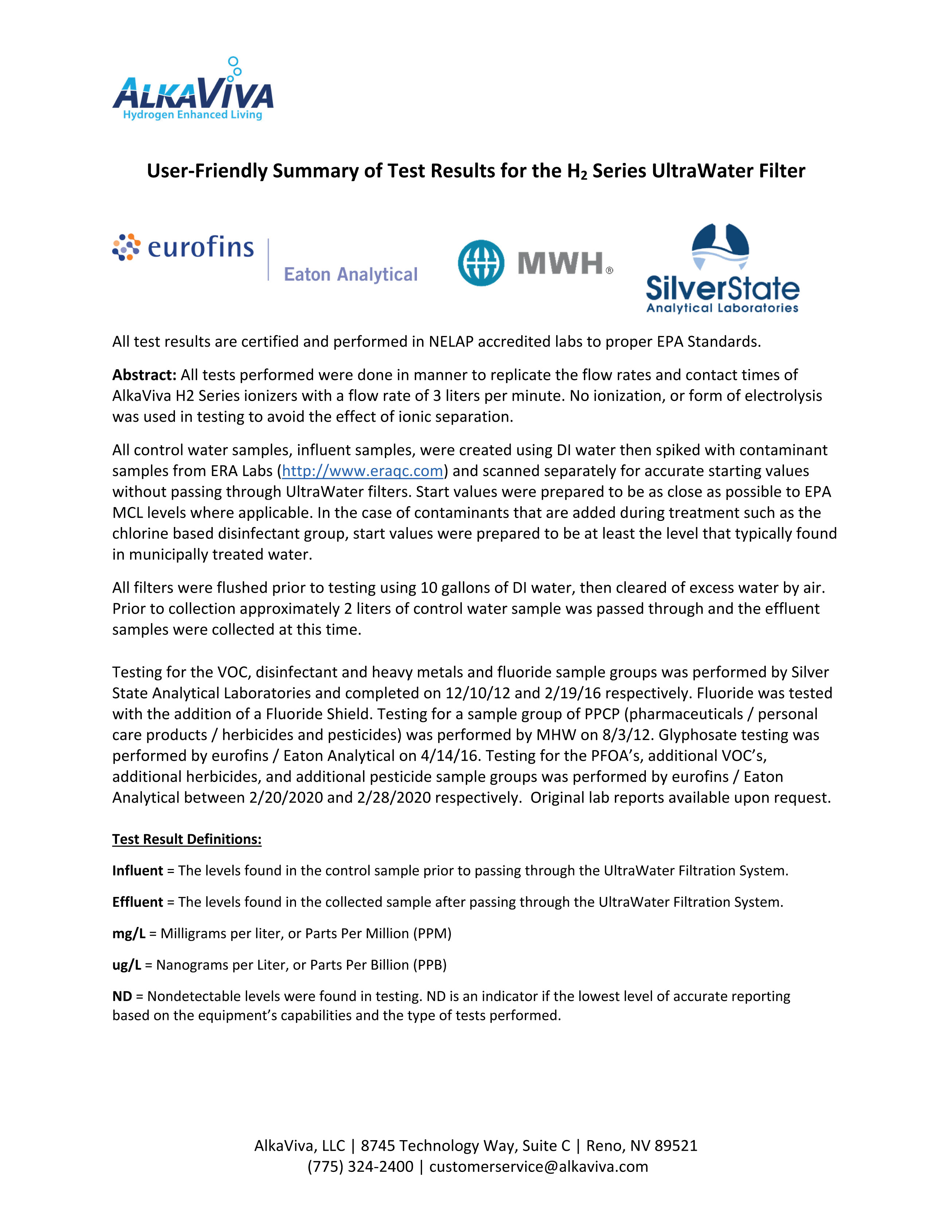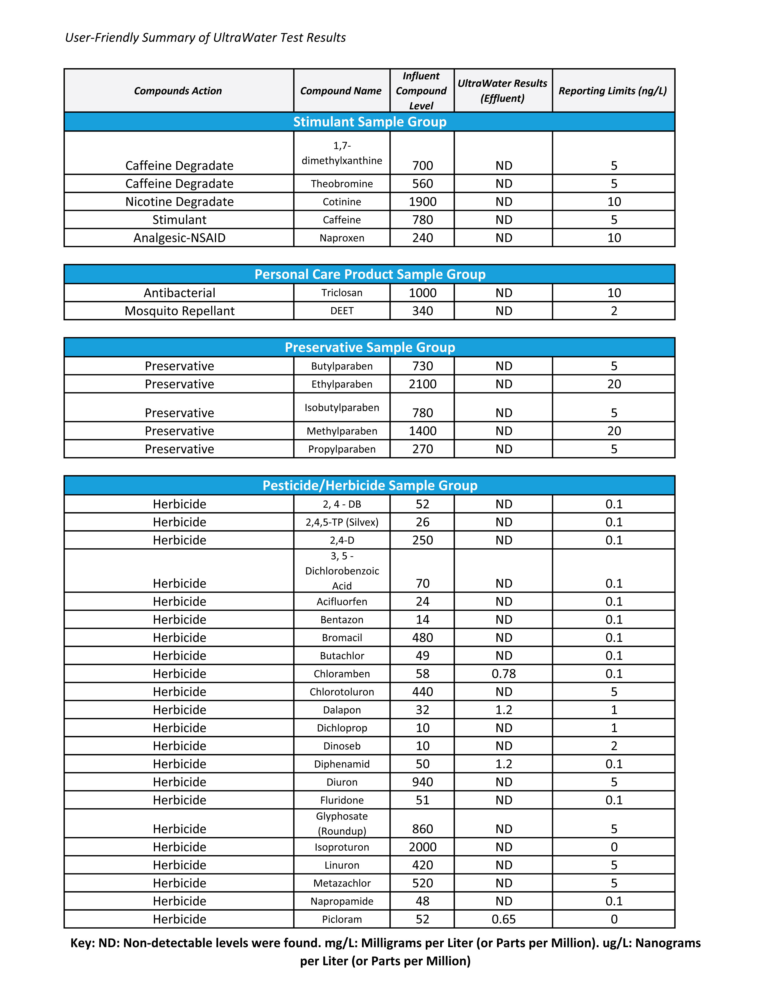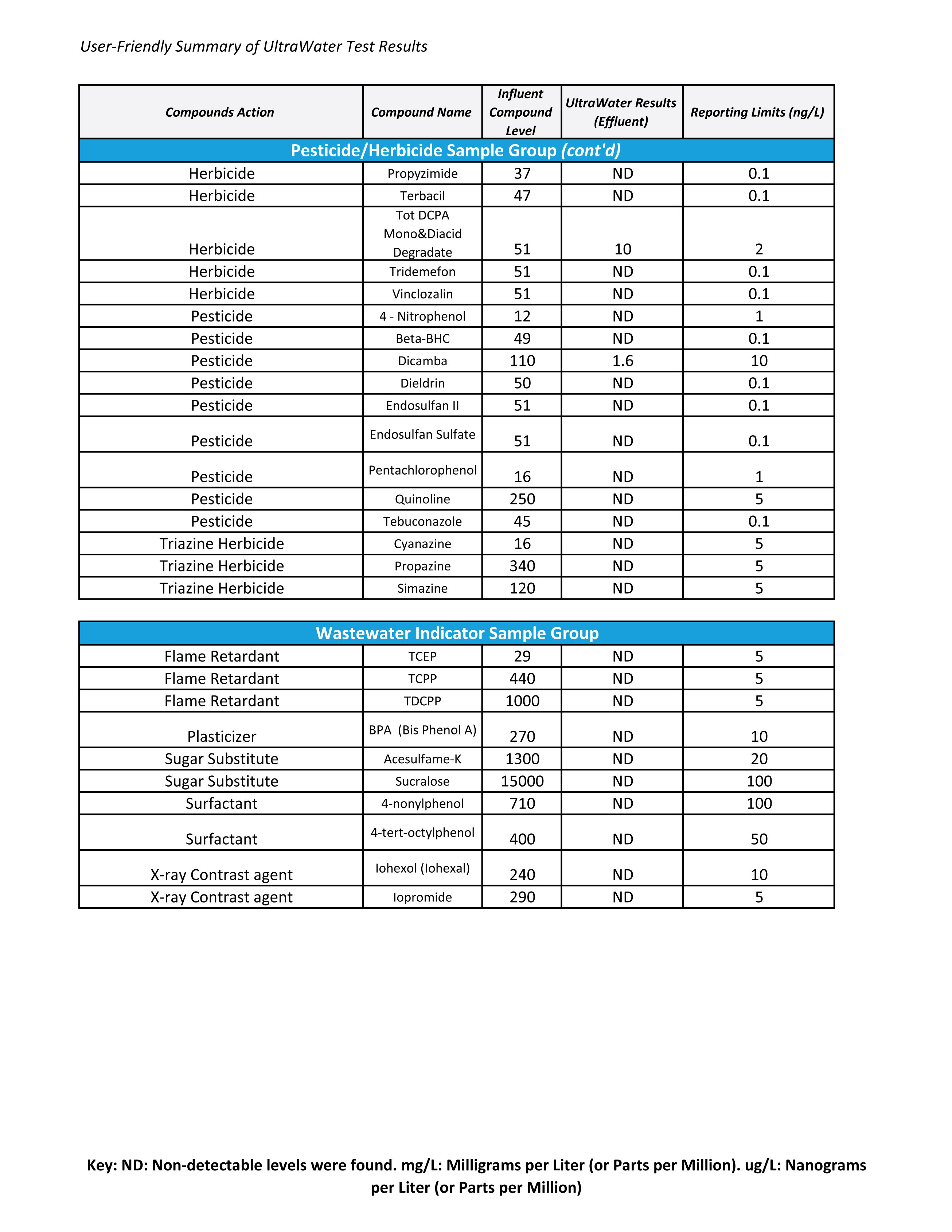 UltraWater Filter Test Results